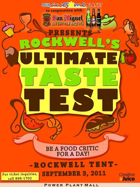 Here’s another foodie event you wouldn’t want to miss – it’s Rockwell’s Ultimate Taste Test happening on September 3, 2011 at the Rockwell Tent in Power Plant Mall.